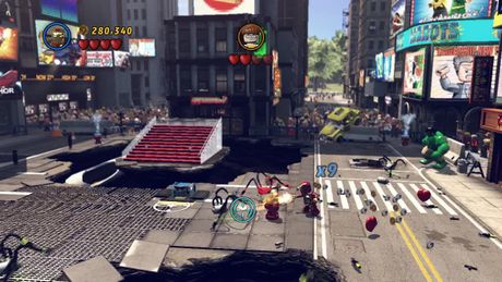 右側の大きな穴にある銀色の車を壊して、ハルクスマッシュする