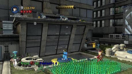 プールの端の銀色の家具を破壊して、ポンプの中の破片を組み立てる。FF4のポータルがあるのでMr.ファンタスティックを使うと、ガラスの向こうに行ける