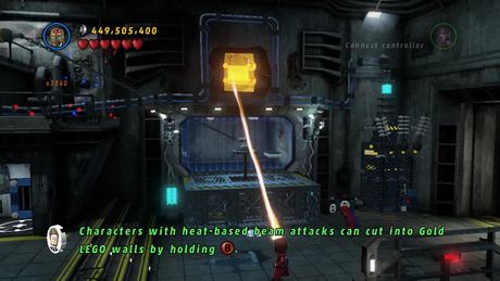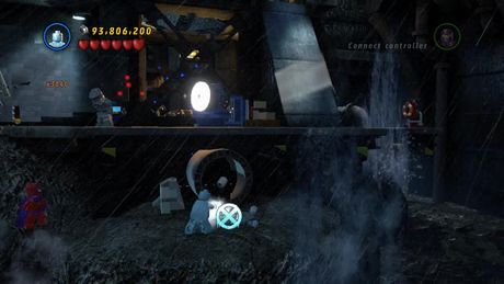 アボミネーションの独房の上にフックがあるので、スパイダーマンやヴェノムなど蜘蛛糸を出せるキャラで引っ張ると、金色のドアが登場。火を操れるキャラでカットするとパーツが出てくるので組み立てる。